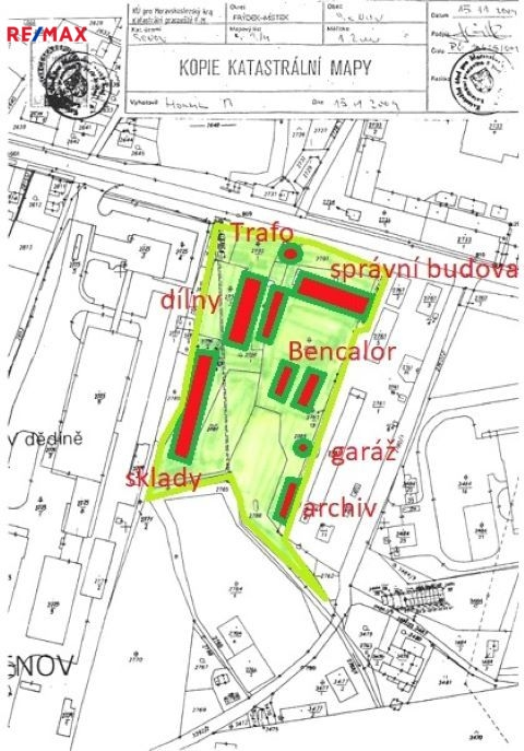 Rádi bychom vám nabídli možnost koupě společnosti vlastnící komerční areál o celkové rozloze 25.203 m2 v obci Šenov u Ostravy. Součástí areálu jsou dílny, sklady, garáže, vlastní čerpací stanice (2x Bencalor), vlastní trafostanice a hlavní správní budova s kancelářemi s možností parkování. Administrativní budova prošla rekonstrukcí v roce 2006, vytápění včetně ohřevu vody je zajištěno pomocí tepelného čerpadla. Areál je napojen na elektřinu, plyn, vodovod i kanalizaci a je z větší části pronajatý. Více informací u makléře, odkaz na video : https://youtu.be/8u7eWzH-xXw