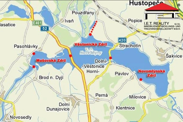 Prodej rovinatého rekreačního pozemku 11 095 m², přiléhajícího k pravému břehu vodní nádrže Nové Mlýny (mezi obcemi Nové Mlýny a Šakvice). Jedná se o plochy smíšené občanského vybavení, bydlení, rekreace a sportu. Podrobnosti k současnému stavu a ceně poskytneme vážným zájemcům individuálně.