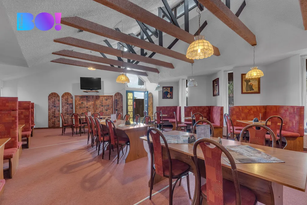 Restaurace se vstupem z hlavní ulice, má kapacitu cca 230 osob: salonek 25, restaurace 60, přední terasa 40, zadní terasa 100 osob. Součástí prodeje je i vedlejší rodinný dům.