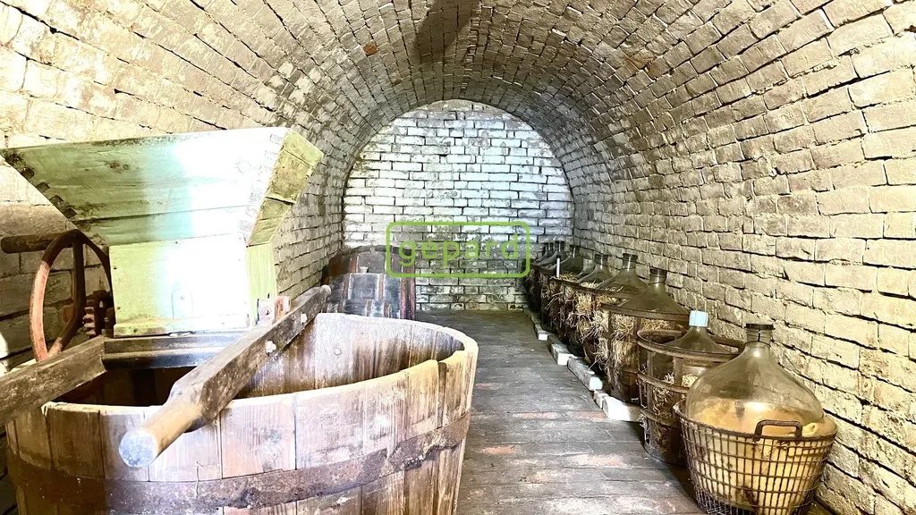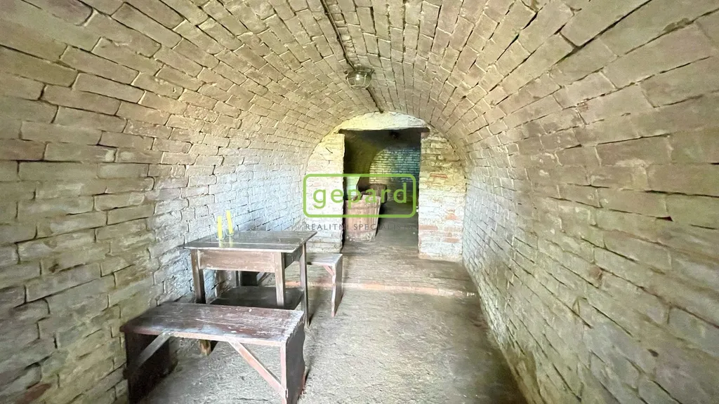 Sklep je klenutý - cihlový s kamennou podezdívkou, délka sklepní chodby činí cca 14metrů. Vstup vede do prostor s menším posezením a dále navazuje kvelbený sklep na uskladnění vína. Do nemovitosti není přivedena voda ani elektřina, ale je vzdálená cca 15m2. V případě zájmu, je možné vystavět před sklepem na vlastním pozemku o rozloze 27m2 menší stavbu.