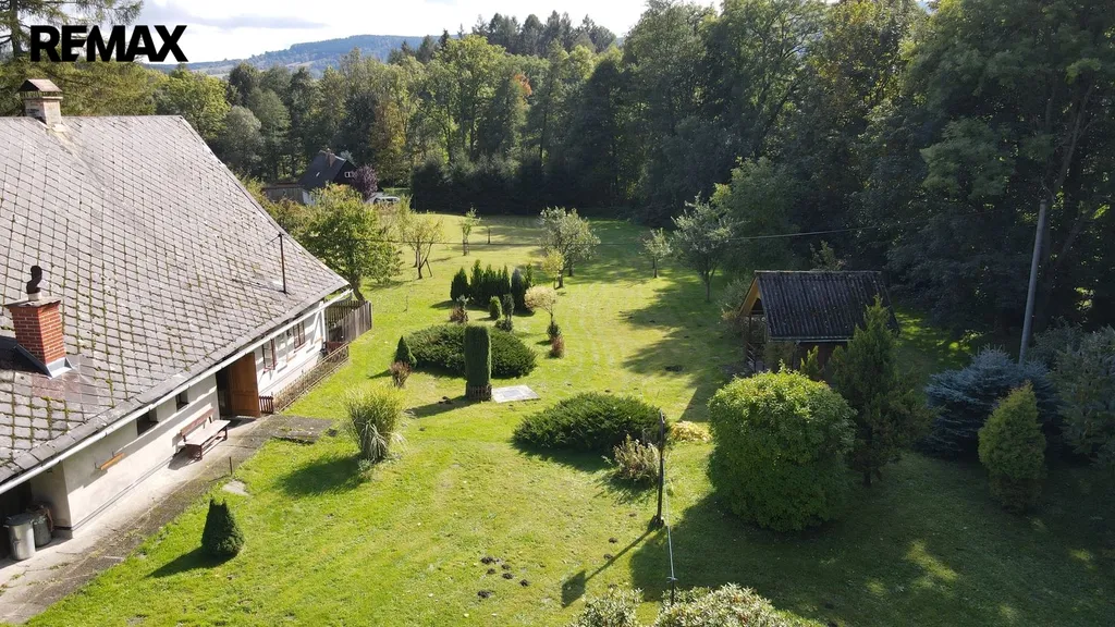 Budova (chalupa) o užitné ploše cca 106 m2 (+17 m2 dílna) a zahradním domkem má k dispozici zahradu o celkové výměře 3720 m2 včetně zastavěné plochy a nádvoří. Celá tato plocha je podle platného územního plání vedená jako zastavitelná plocha, tudíž je možné zahradu rozdělit například na tři parcely s přístupovým pozemkem a využít k výstavbě dalších rekreačních objektů viz návrh v inzerci. Budova (chalupa) s dispozicí 4+kk (viz půdorys v galerii fotek) je vytápěna kamny na tuhá paliva ve dvou místnostech a také zrenovovanými kachlovými kamny. Všechna okna v chalupě jsou dřevěná (kastlová) a jako zdroj vody je zde napojení na vlastní studnu, ovšem v obci je zbudován i vodovod. Odpady v chalupě jsou vyvedeny do jímky a napojení na elektřinu je samozřejmostí.