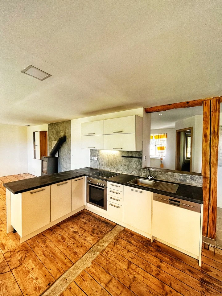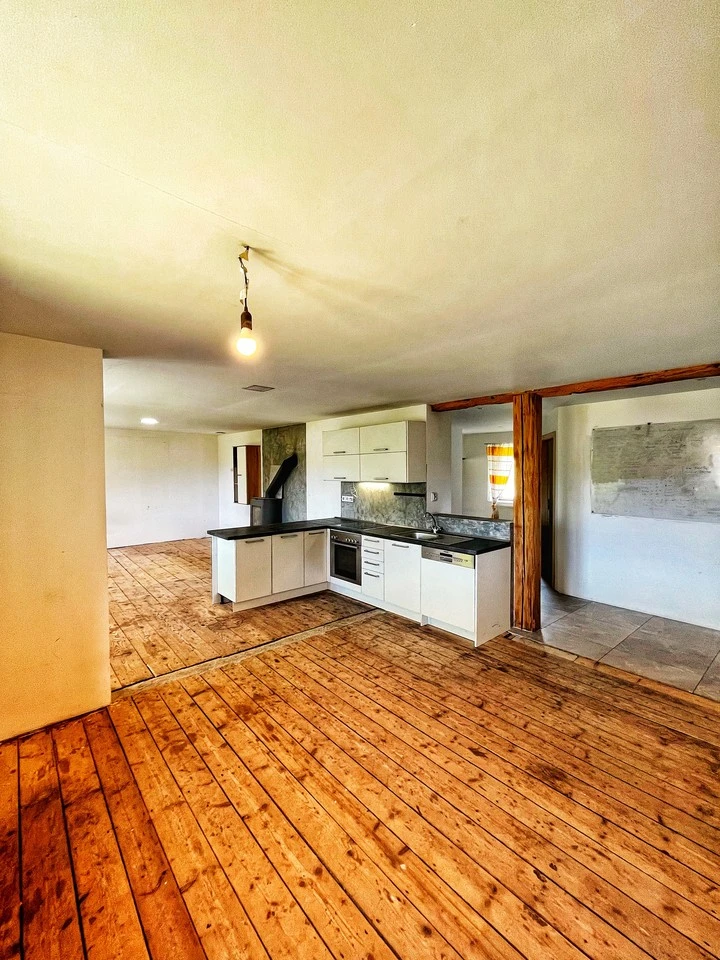 V hlavní obytné budově byl před třemi lety revitalizován a užíván byt o dispozici 2+kk s výměrou 107m2 a na stejném patře je pak možnost úprav dalších místností o rozloze 127,6m2.