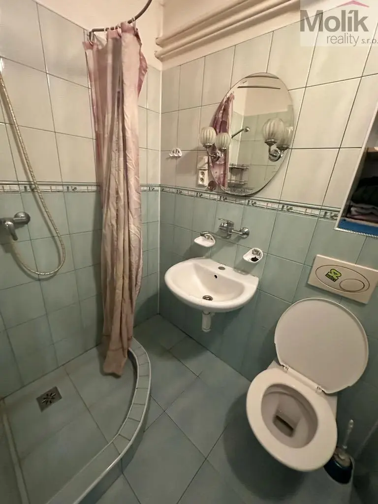 V mezipatře se nachází koupelna.