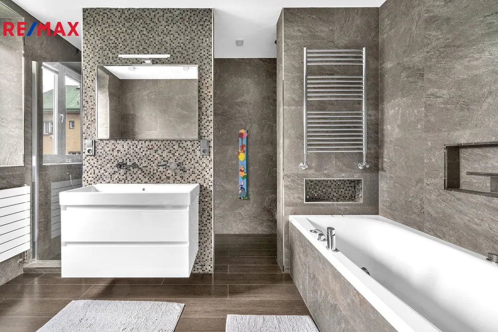 Nabízíme k prodeji luxusní rodinný dům s vnitřním bazénem a trojgaráží po celkové rekonstrukci, který se nachází v centru Trutnova v ulici Dělnická. Velkorysé a náročné stavební úpravy citlivě respektovaly atmosféru objektu s prvky prvorepublikové architektury a veškeré práce byly provedeny s maximální pečlivostí a citem pro detail, vše za účasti renomované architektonické kanceláře. Nadčasová dispozice domu byla téměř zachována, mezi trojgaráž a stavbu rodinného domu byl vestavěn bazén se saunou, který navazuje přes prosklené dveře přímo na obytný prostor v prvním NP. Bazén je přístupný přímo i ze zahrady velkoformátovými okny. Celková zastavěná plocha objektu je 320 m2 (s bazénem a garáží), užitná podlahová plocha samotného domu 355 m2 (bez bazénové části a garáže). Čtyřpodlažní dům kromě dvou obytných podlaží nabízí v prvním podzemním podlaží rovněž kompletně zrekonstruované prostory sloužící k podnikání se samostatným přístupem, nyní jsou zde tři samostatná studia se zázemím, která jsou pronajímána, ve čtvrtém nadzemním podlaží je k dispozici prostorná půda vhodná k případné vestavbě. V prvním nadzemním podlaží v úrovni zahrady je polootevřený prostor denní části tvořený kuchyní s jídelním koutem a spíží, obývacím pokojem, pracovnou, toaletou, technickým zázemím a původním schodištěm. Dále se zde nachází bazén, vířivka a sauna s ochlazovnou. Ve druhém nadzemním podlaží se nacházejí tři prostorné místnosti, z nichž dvě mají východ na balkon lemující jihozápadní část domovní fasády a dvě luxusní koupelny. Jedna z koupelen s vanou i sprchovým koutem je přístupná přímo z ložnice rodičů, v této místnosti se nezapomnělo ani na praktickou šatnu. Foto z místností ve druhém nadzemním podlaží z důvodu zachování soukromí majitele v inzerci chybí. Při rekonstrukci bylo dosaženo energetické náročnosti objektu třídy „B“. Pečlivě založená a udržovaná zahrada s menším dětským hřištěm a prostorem na grilování, perfektní oslunění rodinného domu a přístupové cesty s možností vytápění v zimních měsících podtrhují atraktivnost nabídky. Klidné místo v zástavbě rodinných a menších bytových domů poskytuje všechny výhody bezprostřední blízkosti centra města s maximální občanskou vybaveností. Více informací k výjimečné nabídce pro náročné klienty a k možnostem financování sdělí realitní kancelář.