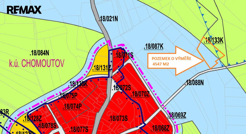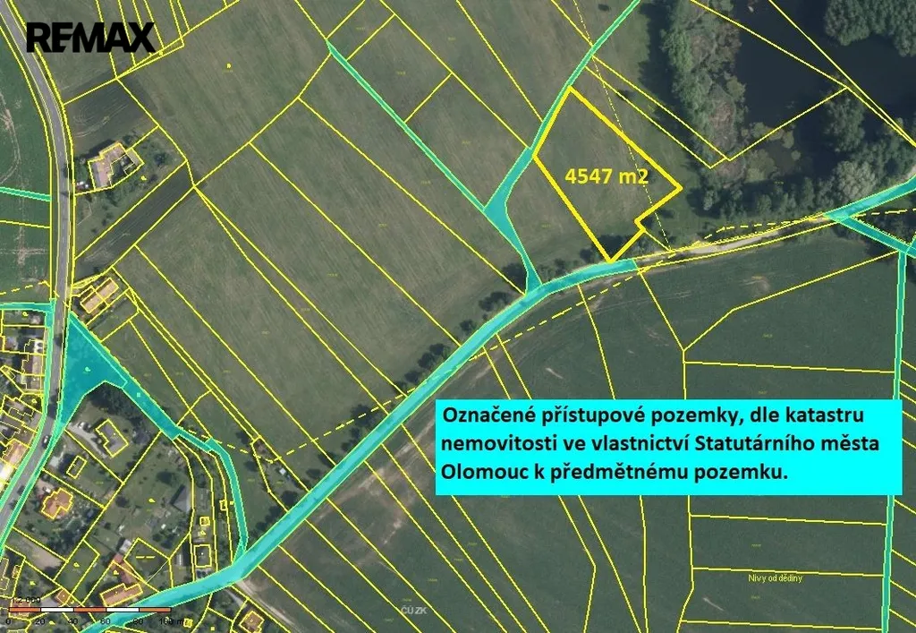 Nabízíme k prodeji pozemek o výměře 4547 m² vedený katastrem nemovitostí jako orná půda v blízkosti Přírodní památky Chomoutovského jezera v městské čtvrti Olomouc - Chomoutov. Pozemek patří do CHKO Litovelského Pomoraví a nachází se v chráněné krajinné oblasti II. - IV. zóny, pásma vodního zdroje 2.stupně, ptačí oblasti, přírodní rezervace - přírodní památky. Pozemek je dle aktuálního územního plánu veden jako Plochy zemědělské s hlavním využitím: