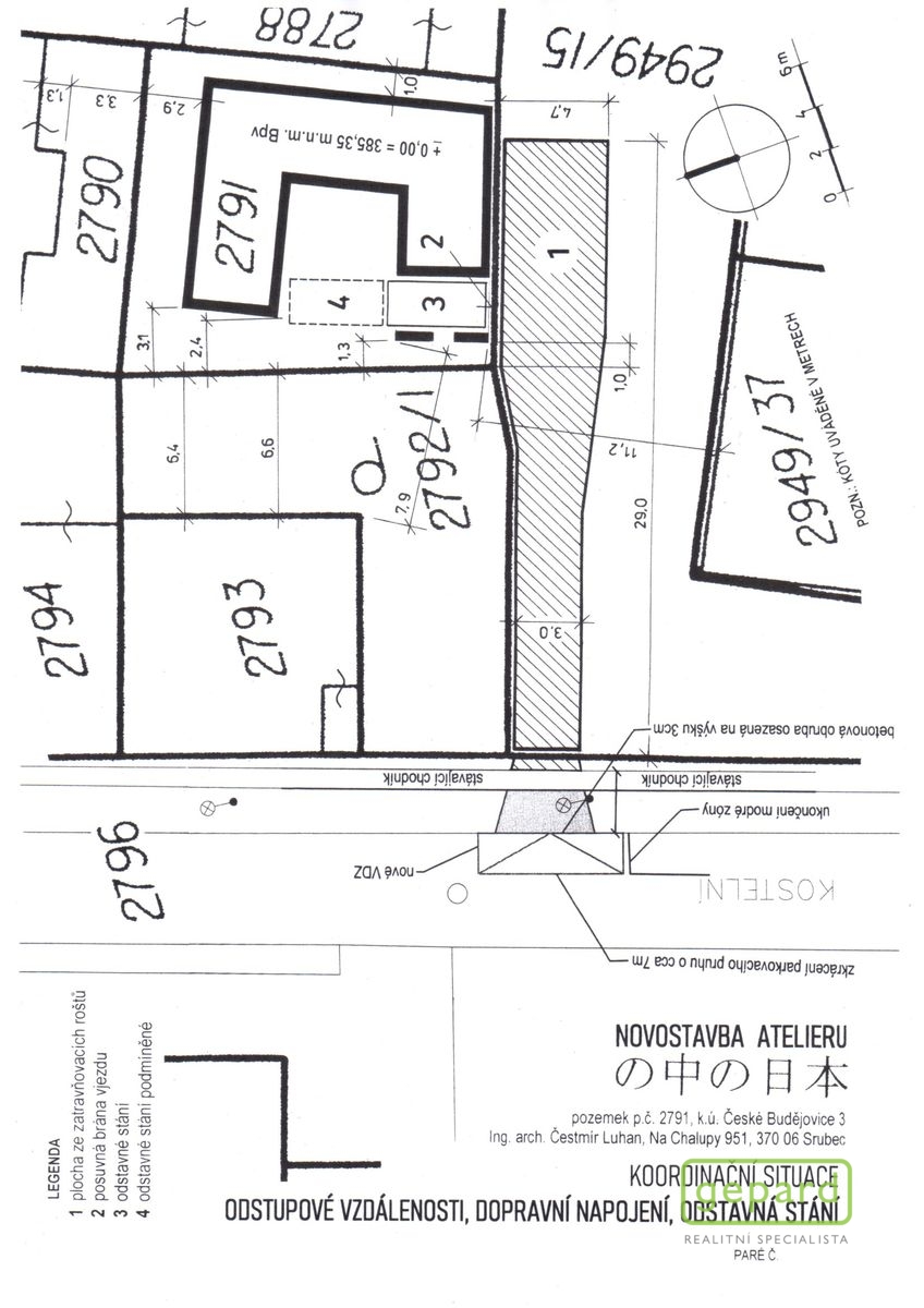 Celková plocha stavebního pozemku je 241 m2 a vlastníkem a zároveň zpracovatelem záměru a projektu byla již zpracována projektová dokumentace k uvedenému, včetně souhlasných stanovisek, přípojek (voda, plyn, elektro, kanalizace), smluv a vyjádření potřebných k následnému vydání stavebního povolení, naposledy - Kladné závazné stanovisko se stavebním záměrem – atelier (víceúčelová stavba) Magistrát města České Budějovice, odbor územního plánování.