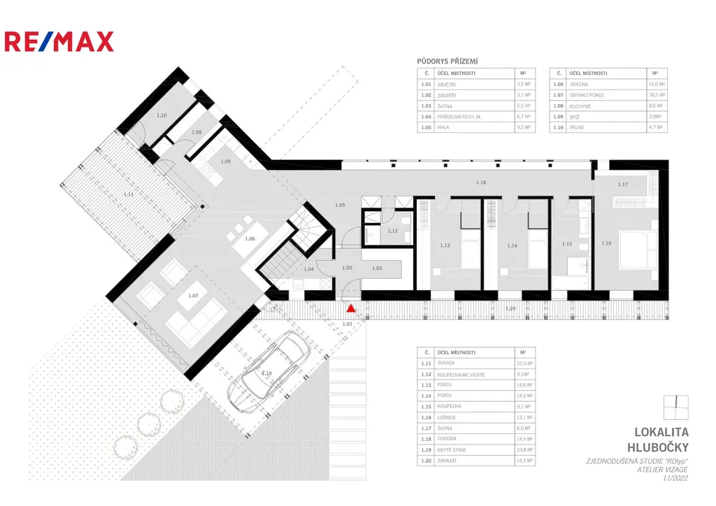 Jednopodlažní dům s obytným podkrovím o celkové užitné ploše 178,6 m² a dispozicí 5+1 je situovaný z části na rovinatém a z části na svažitém terénu. Dům se prodává ve standardu hrubé stavby. Ta zahrnuje základovou desku, hydroizolaci a tepelnou izolaci, stavbu z keramických pálených cihel o minimální tloušťce zdiva 440 mm včetně překladů a věnce, klempířské prvky, hliníkové okenní rámy s trojsklem, dále oplocení, pergolu, finální fasádu, bílou omítkovinu a kompletní dřevěné prvky.