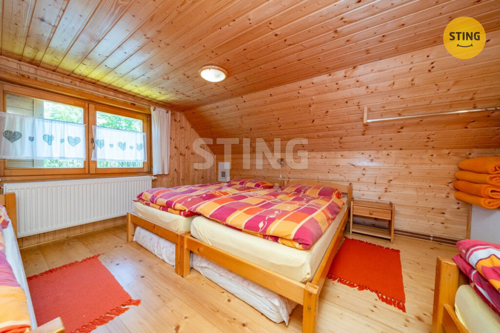 Ve 2NP se nachází prostorný a prosvětlený obývací pokoj s krbem a vstupem na balkón, který je situovaný ze dvou stran chaty. Dvě ložnice a šatna se nachází v podkroví. V menší ložnici je jedna manželská postel. Druhá ložnice je čtyřlůžková, jedna manželská postel a dvě klasické postele. Mezi těmito dvěma pokoji je prostorná šatna. Z boční strany chaty je kůlna, která může sloužit také jako dílna, kolárna či lyžárna.