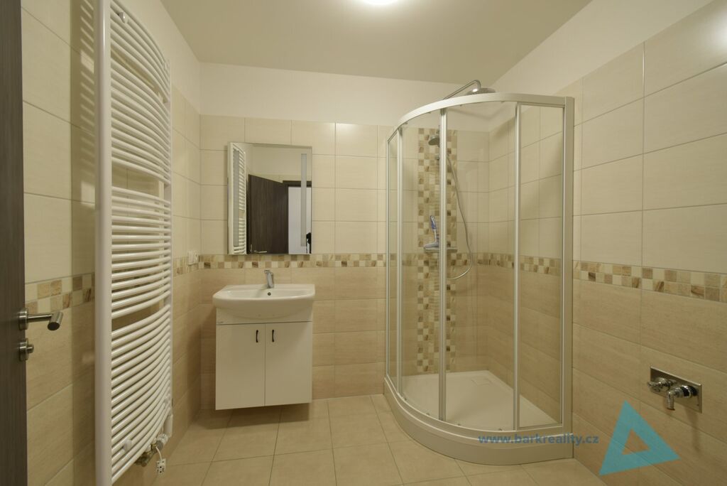 Součástí vybavení je nová kuchyňská linka se spotřebiči (včetně lednice a myčky), vestavěná skříň v chodbě, úložná skříň v koupelně a TV stolek v obývací části. Prostorná koupelna nabízí moderní sprchový kout, umyvadlo, topný žebřík a přípojku na pračku. Samozřejmostí je možnost připojení k internetu a společné anténě.