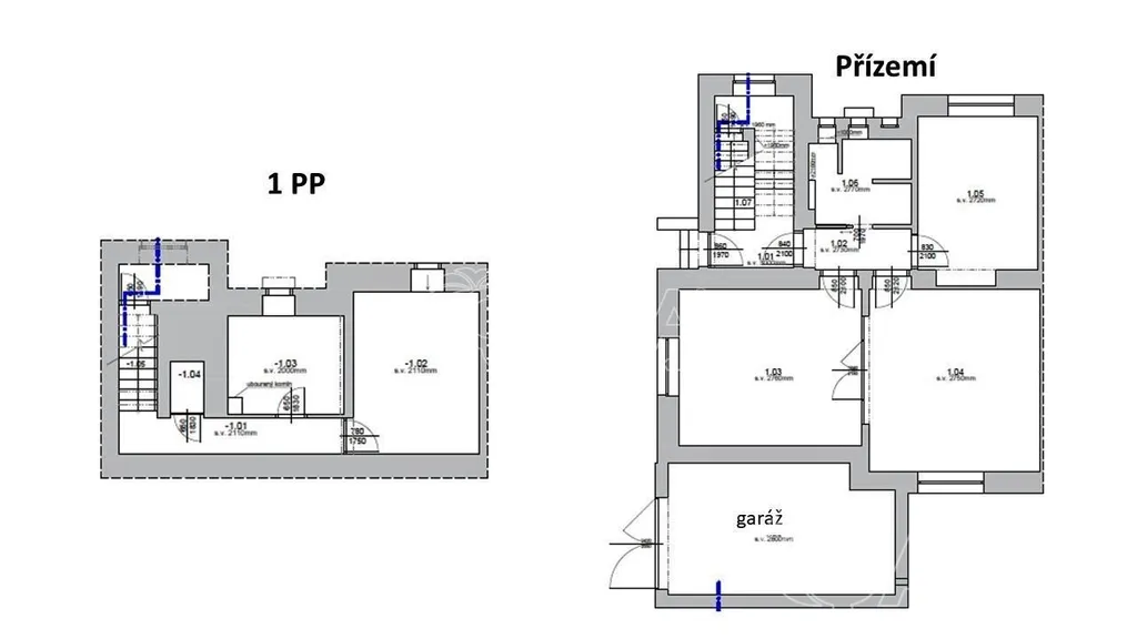 V 1PP jsou skladové a technické prostory celkem 27,4 m2