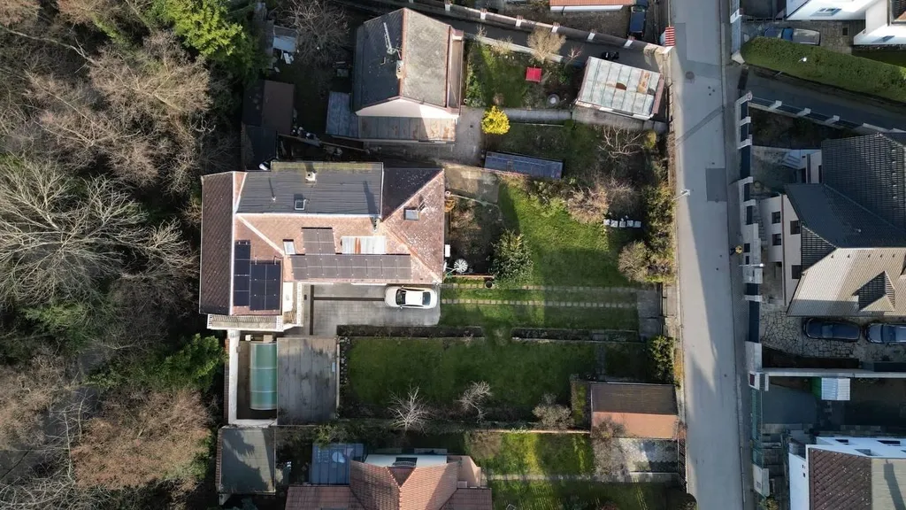 Přesto, že je dům vzdálen 500 metrů od frekventované Plzeňské ulice, zahrada Vás překvapí neuvěřitelným klidem a tichem. Pozemek je rovinatý, obdélníkového tvaru.