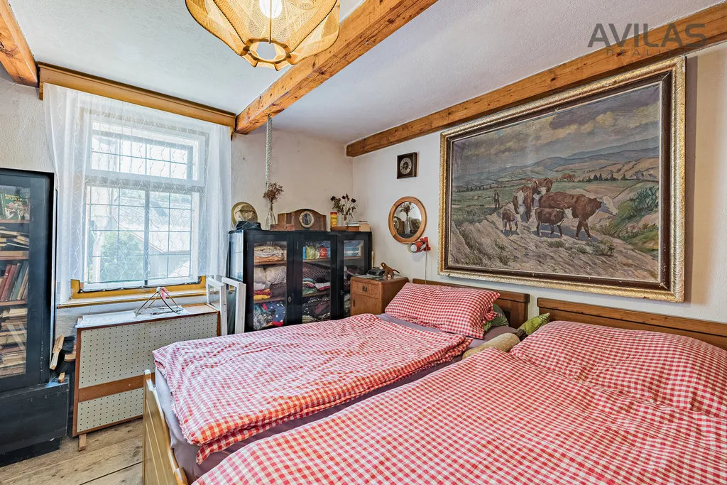 Dispozice domu: obývací pokoj, ložnice, kuchyň, koupelna s wc. Možnost využití půdy k půdní vestavbě.