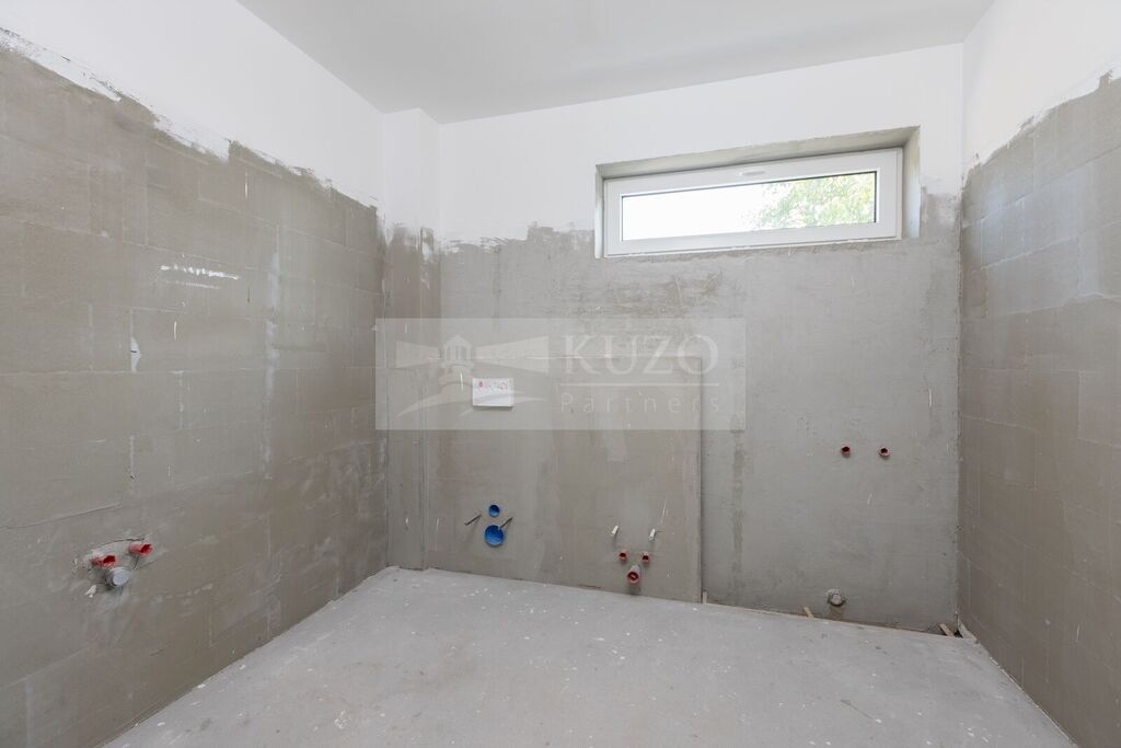 V přízemí přes vstupní předsíň se nachází prostorný obývací pokoj s kuchyňským koutem o výměře skvělých 38 m2, dále koupelna se sprchovým koutem a toaletou, technická místnost a prostorná garáž o výměře něco málo přes 28 m².