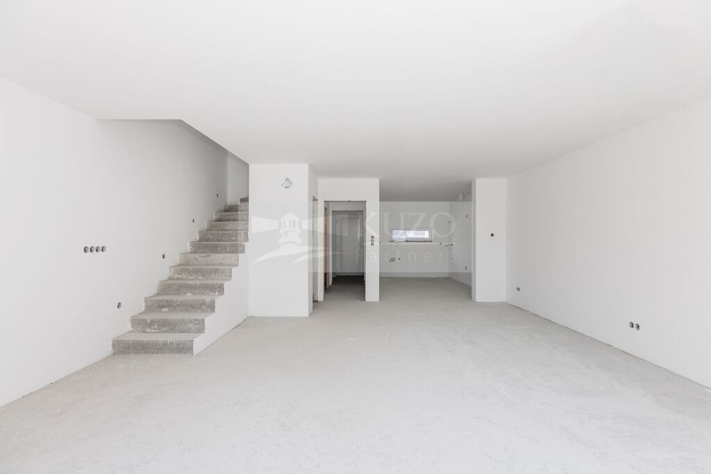 V přízemí přes vstupní předsíň se nachází prostorný obývací pokoj s kuchyňským koutem o výměře skvělých 44 m2, dále koupelna se sprchovým koutem a toaletou, technická místnost a prostorná garáž o výměře téměř 29 m².