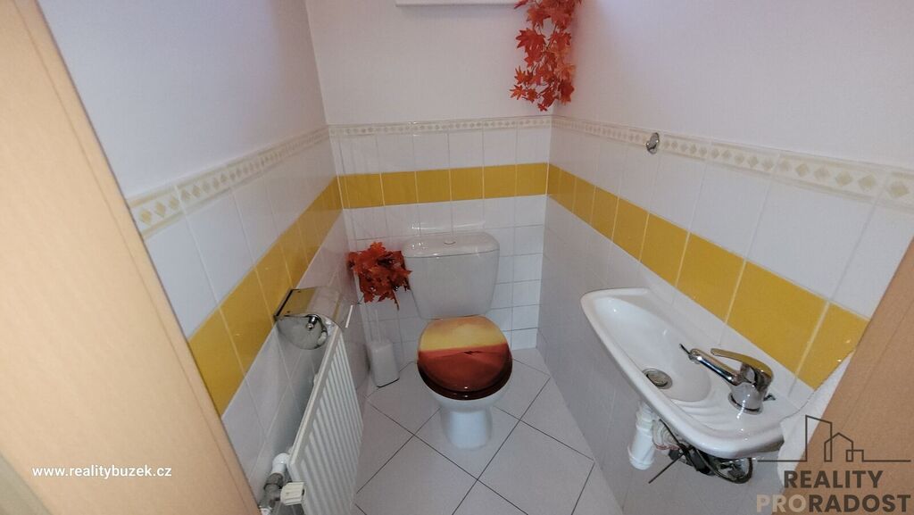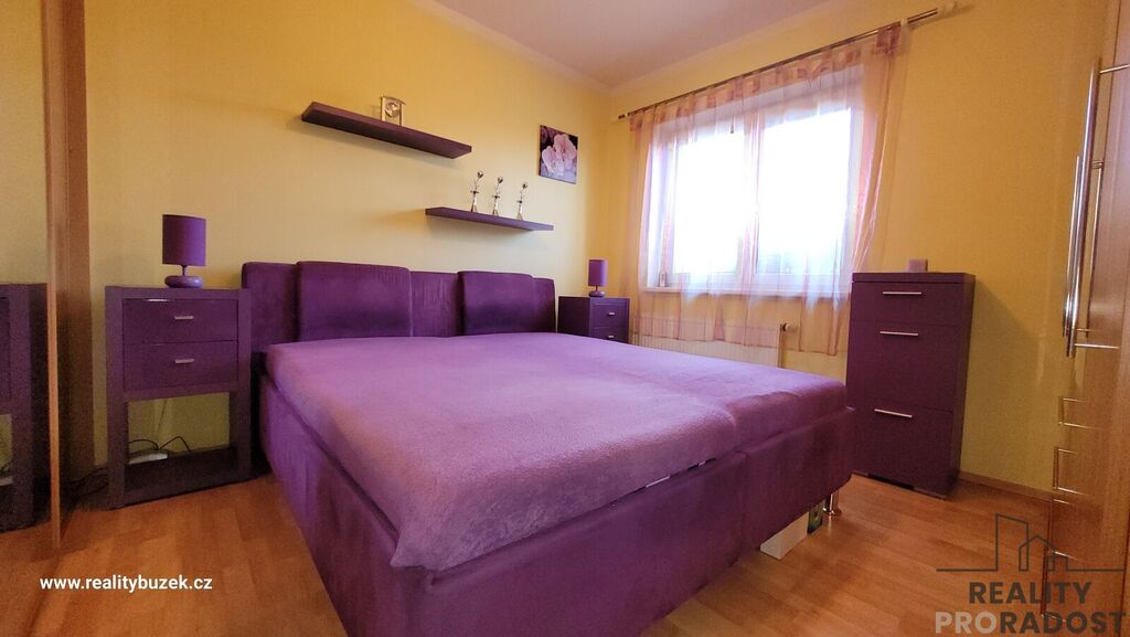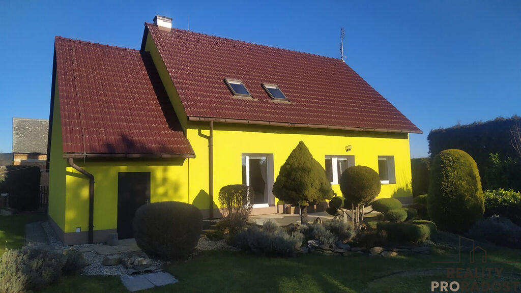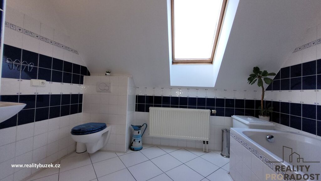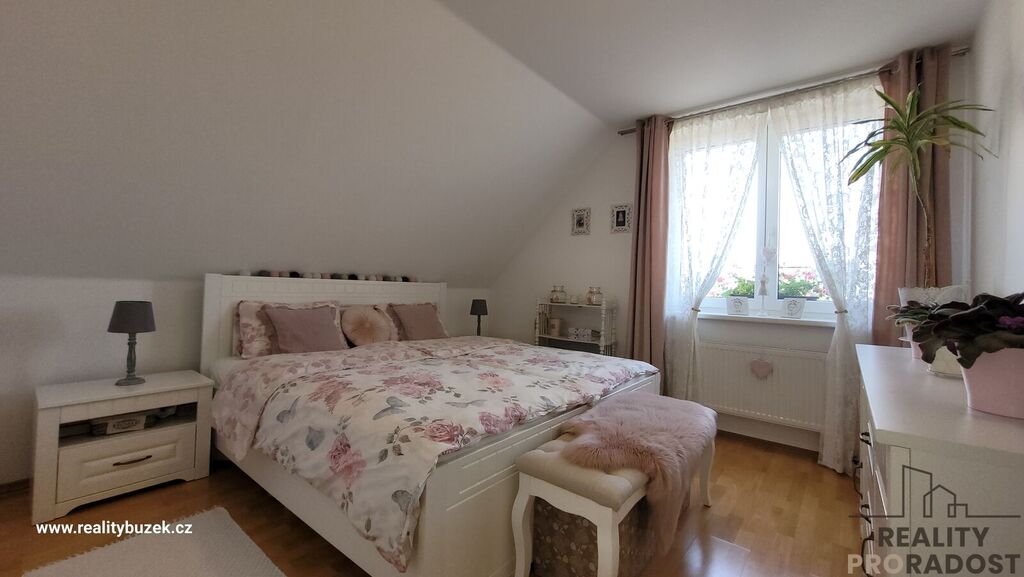 V podkroví jsou tři pokoje a koupelna s wc. Za domem je malebná zahrada.
