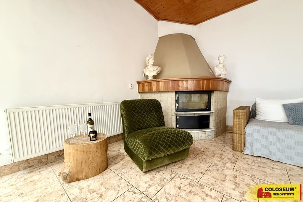Uzavřený dvorek zajišťuje soukromí, vlastní studna dostatek užitkové vody a zděný dřevník pohodlné uskladnění čehokoliv.