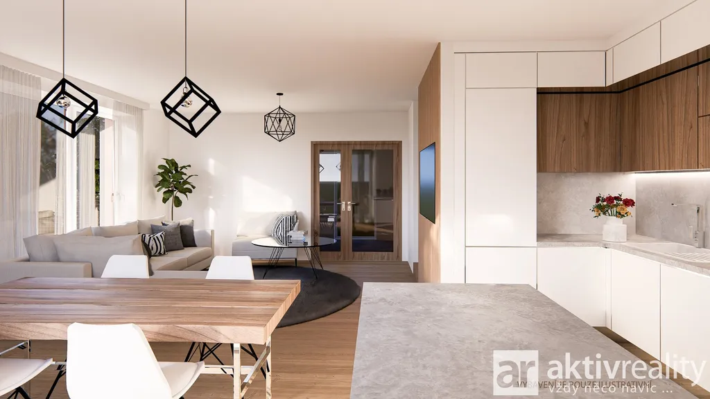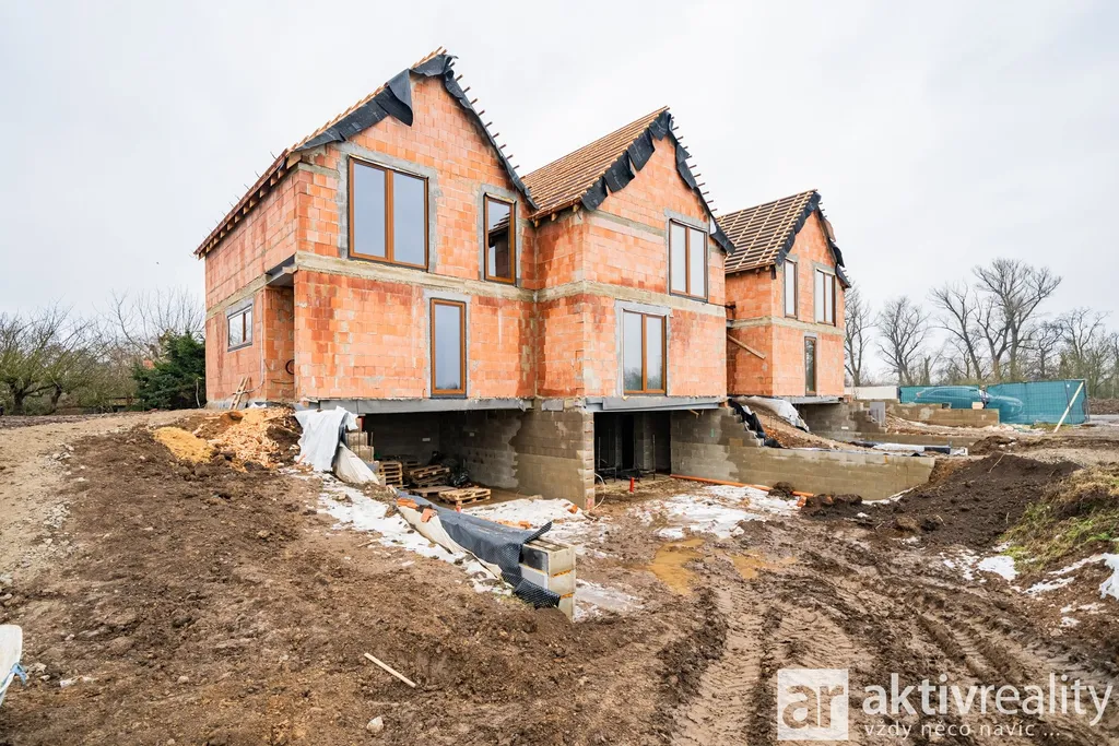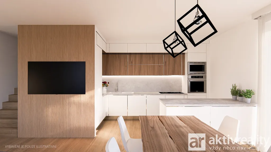 Nabízíme prodej novostavby rodinného domu v unikátním developerském projektu v obci Lužec nad Vltavou, pouhých 20 minut jízdy autem od Prahy, na hezkém místě v těsné blízkosti cyklostezky a umělého plavebního kanálu. Nabízený rodinný dům je situován v souboru celkem 12 designových domů navržených známým pražským architektonickým studiem Versatille. Důraz na prostornost a komfort je patrný ve všech ohledech. Dispozice domu je příjemných 4kk s dvougaráží, kdy celkovou užitnou plochu 145 m2 dělíme na podlahovou plochou bytu 111 m2 a 38 m2 je výměra dvougaráže. K dispozici je také samostatná soukromá zahrada, která je architektonicky řešena tak, aby nabídla co nejvíce soukromí a oddělený prostor od sousedních domů. Obytná dispozice je řešena prakticky, kdy v přízemí naleznete prostornou vstupní předsíň, která je samostatně oddělena od veškerých dalších místností v domě a je zde připraven také prostor na velký botník a šatní skříně. V navazující chodbě se nachází samostatné WC s umyvadlem a velmi praktická samostatná technická místnost. Obytný prostor přízemí je vzdušně otevřený do velkého prostoru, kdy je obývací pokoj plynule spojený s jídelnou a kuchyní s dostatkem pracovních ploch. Schodištěm se dostaneme do chodby v prvním nadzemním podlaží, kde se nabízí tři velké ložnice, prostorná koupelna a rovněž technická místnost na pračku a sušičku. Moderní design a světlé interiéry Vám poskytnou pocit lehkosti a prostornosti, který si zamilujete. S moderním vytápěním pomocí tepelného čerpadla v kombinaci s podlahovým topením ve veškerých prostorách domu a rekuperací nejen ušetříte na energii a finančních nákladech, ale také přispějete k ochraně životního prostředí. Soukromá zahrada u každého domu představuje ideální místo k odpočinku, setkávání s rodinou a přáteli, nebo pěstování rostlin a zeleně. Lužec nad Vltavou nabízí vynikající dostupnost do větších měst, Praha 25 minut autem, Mělník 10 minut autem. K jízdě do Prahy či Mělníka můžete rovněž využít i autobusovou dopravu. V obci je Kulturní středisko, Kino, Divadlo, Mateřská škola, Základní škola, Jednotka sboru dobrovolných hasičů, Knihovna, Galerie, Fotbalový klub, dětská hřiště. Blízkost k cyklistické trase a historickému plavenému kanálu, které protínají okolní krajinu, nabízí nekonečné možnosti pro rekreační aktivity. Pro milovníky cyklistiky a pěší turistiky je toto místo doslova rájem díky probíhající cyklotrase a snadnému přístupu k trávení volného času a příjemným vycházkám. Lokalita rodinného domu nabízí nejen ideální dostupnost díky blízké dálnici do hlavního města Prahy, ale díky své poloze i klidné místo na rodinný život s veškerou potřebnou občanskou vybaveností.