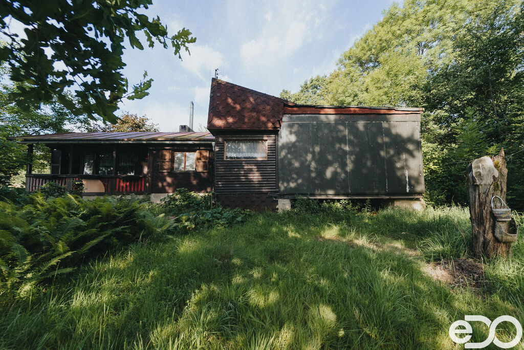 Na pozemku stojí malá dřevěná chatka k rodinné rekreaci, která se těší nádhernému výhledu až na Javorník.