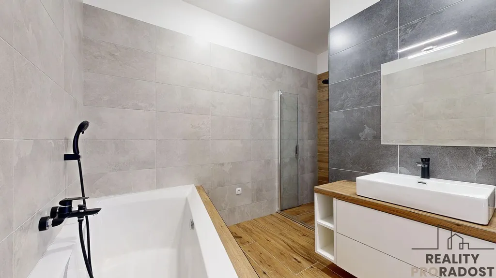 Již při vstupu do bytu zaujme podlahové vytápění a klimatizace, které zajišťují dokonalý komfort a pohodlí. Prostorný obývací pokoj je prosvětlený velkými okny a nabízí nádherný výhled na řeku, což dodává bytu jedinečnou atmosféru. Elegantní kuchyň s moderními spotřebiči a luxusními detaily je snem každého gurmána.