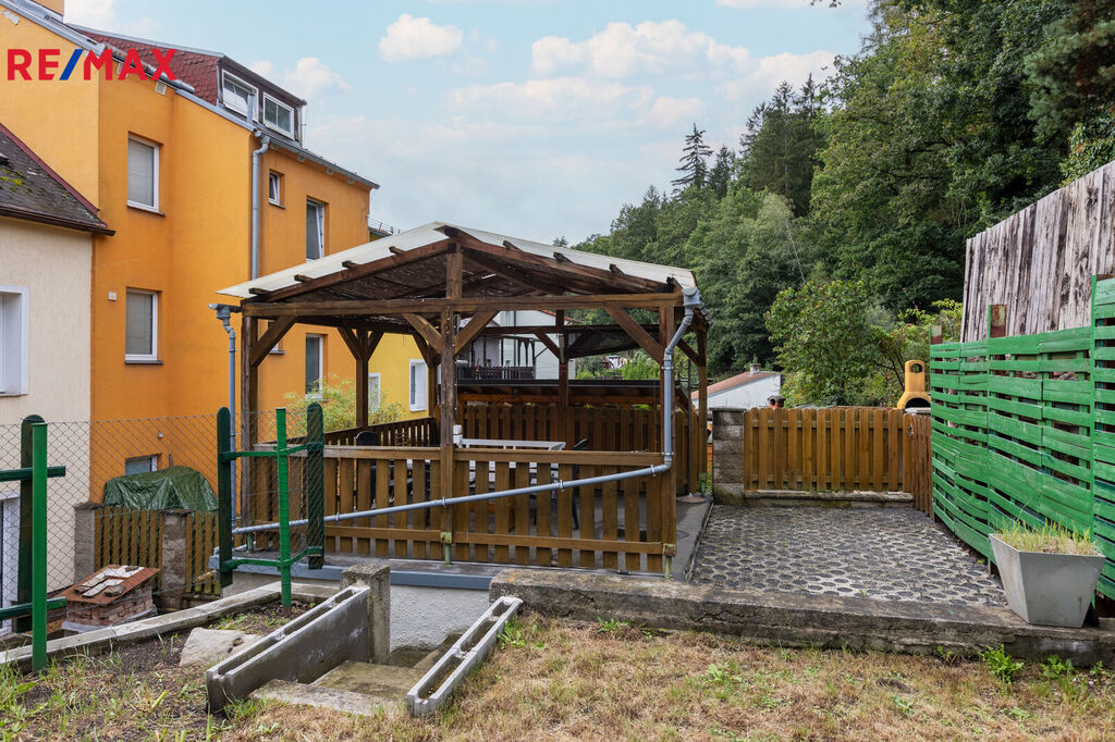 K nemovitosti patří udržovaná zahrada, kde najdete relaxační altán – ideální místo pro posezení s rodinou nebo přáteli. Dům je situován v klidné části obce, pouhých pár kroků od lesa a malebného parku, který nabízí možnosti pro relaxaci, sport i procházky.