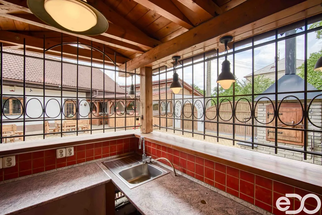 Letní bar je vybaven udírnou a ohništěm na grilování a opékání.