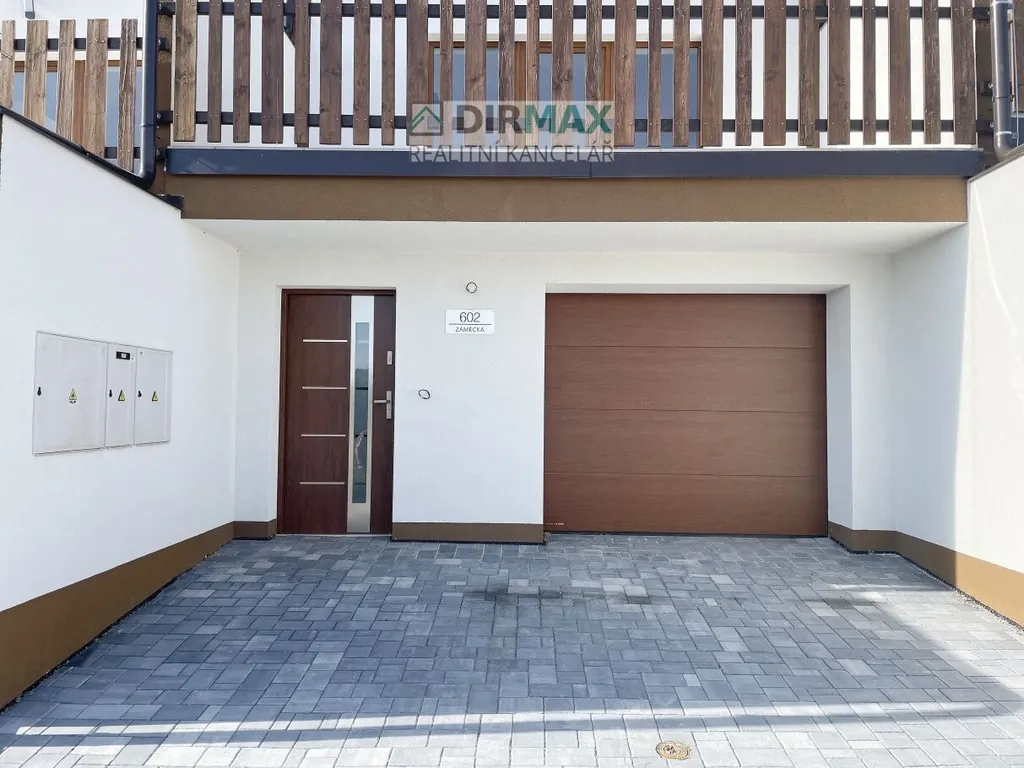 Každý dům má svoje číslo popisné, Zámecká ulice (604 a 605) a je tady napojení na veškeré sítě - městská voda, kanalizace, elektřina, plyn, optický internet.