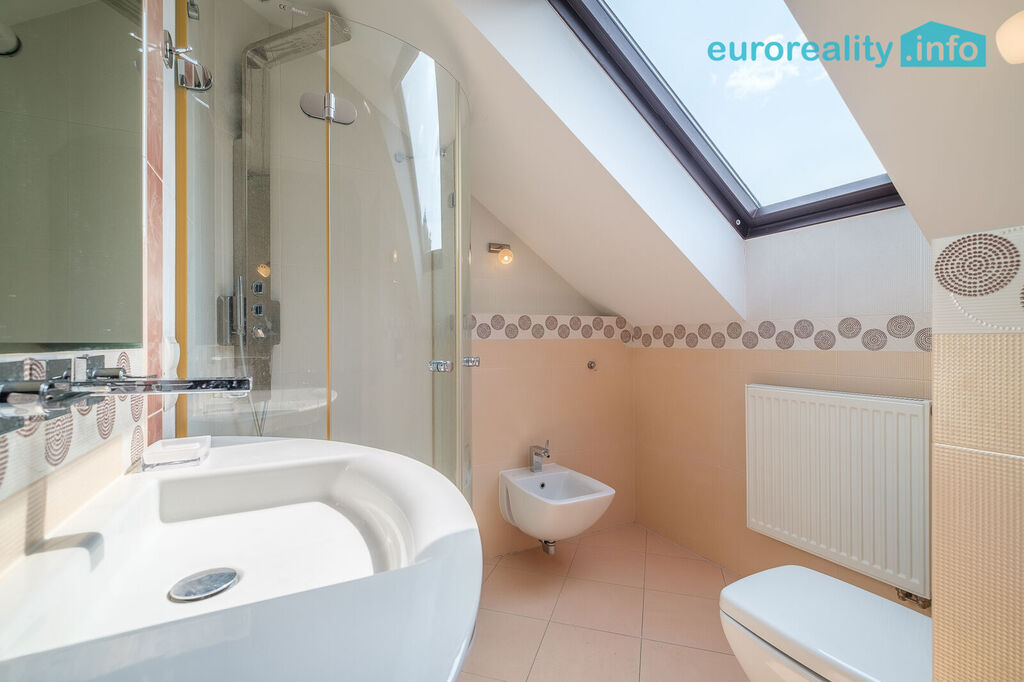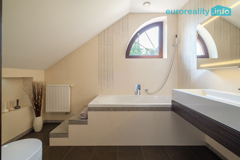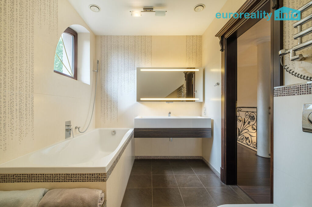 Nabízíme k prodeji nadstandardní rodinný dům, který se nachází v klidné části obce Mezirolí, jen 5 km od Karlových Varů. Luxusně řešená samostatná stavba stojí na vlastním pozemku o výměře 984 m2 a skládá se ze tří podlaží. Použité materiály jsou v nejvyšší kvalitě (mramor, kování, žula), dům má svůj systém čištění vzduchu, zavlažovací systém zahrady, kamerový systém + security zabezpečení. Dům je napojen na veřejný vodovod a kanalizaci, otop je řešen plynovým kotlem a je energeticky velmi nenáročný díky použitým technologiím a velmi kvalitnímu zateplení. Jedno podzemní a dvě nadzemní podlaží nabízí veškerý komfort stylových pokojů, sauny, technického zázemí a úložných prostor. Na rozlehlé zahradě se nachází vlastní jezírko, krb, udržované rostlinstvo a stromy. Nemovitost je v přímé dostupnosti občanské vybavenosti, v bezpečné zóně moderní a oblíbené obce se zárukou naprostého soukromí a klidu. Rádi vám podáme více informací při případné prohlídce, kterou doporučujeme. Možno financovat hypotékou, kterou vám vyřídíme zdarma v rámci našich služeb.