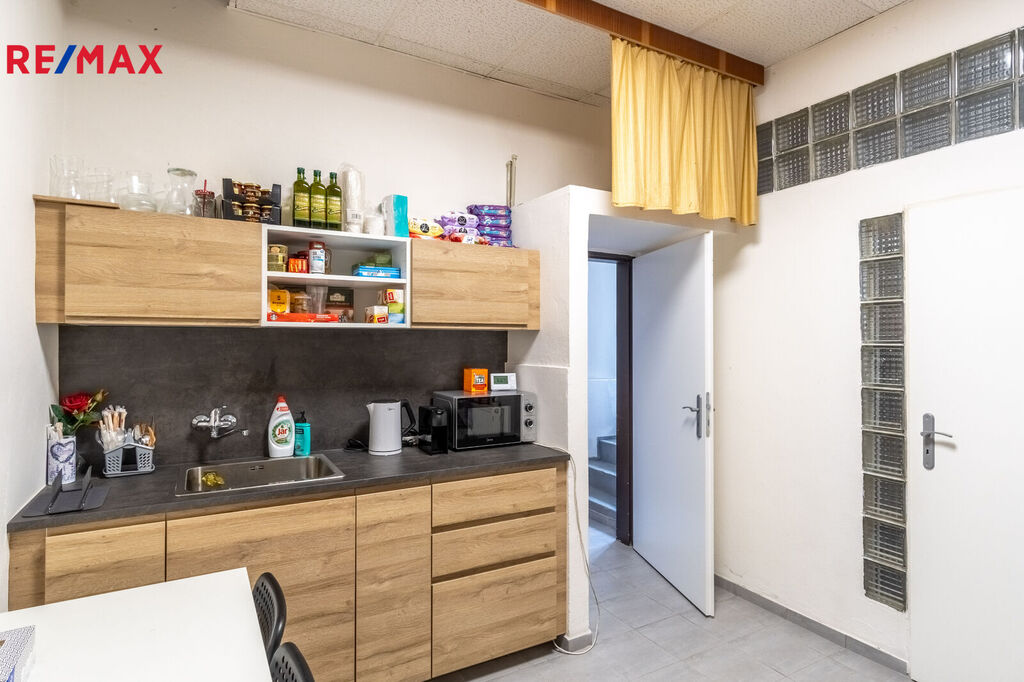 Další místností je samostatná kancelář s oknem do ulice, dvě další místnosti mají okna orientována do vnitrobloku.