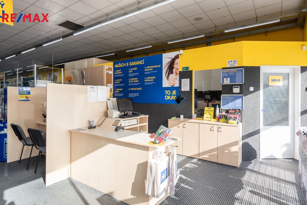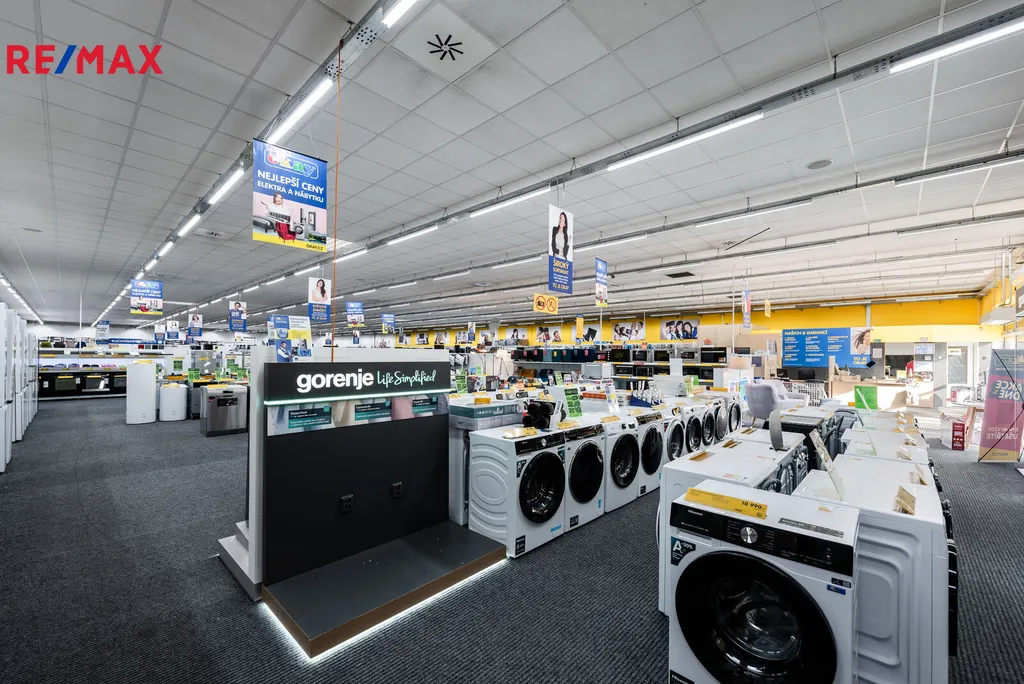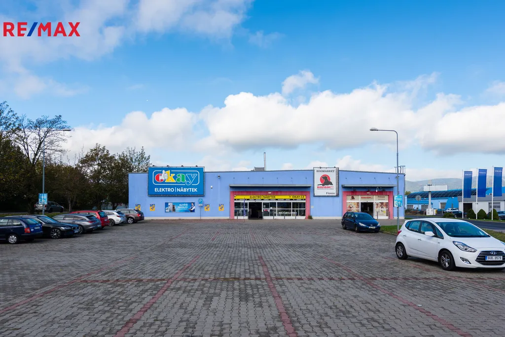Nabízíme prodejní halu s parkovací plochou pro 50 vozů. Objekt, kolaudovaný v r. 2006 je rozdělen na dvě obchodní jednotky. První prodejna OKAY Elektro 1182 m², druhá prodejna Hafani 423 m². Zázemí pro zaměstnance 63 m² je společné, stejně tak i prostor pro příjem zboží 47 m² s roletovými vraty v zadní části budovy.