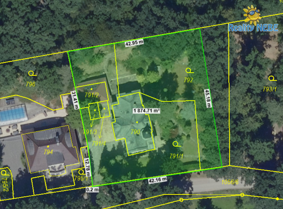Zastavěná plocha: Vila 187 m2, ateliér 61 m2, dvojgaráž 32 m2