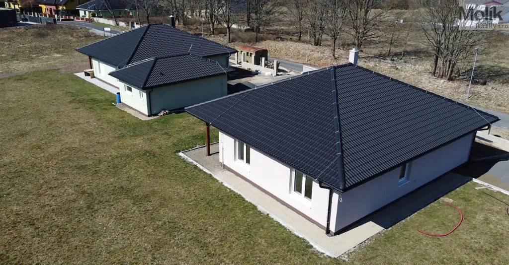 Nabízíme k prodeji novostavbu rodinného domu před kolaudací o dispozici 4+kk s pozemkem o celkové výměře 1290 m2.
