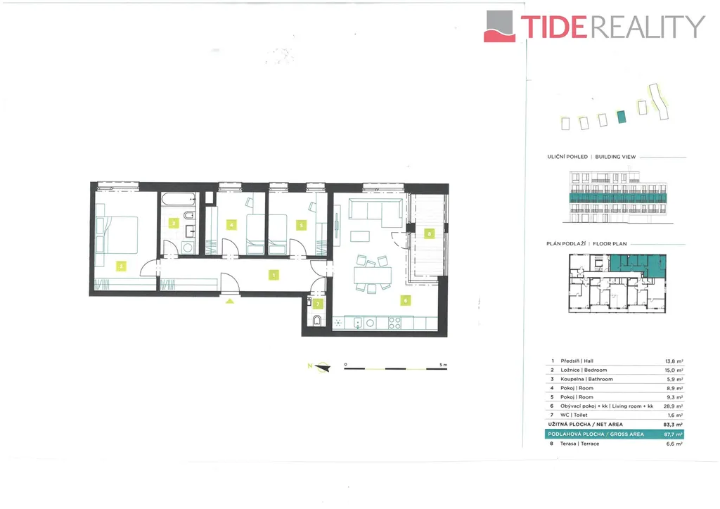 Moderní byt s velmi příjemnou jihovýchodní orientací o podlahové ploše 83 m2 s terasou 6.6m2, se nachází ve 3.NP komorního pětipodlažního domu (14 bytových jednotek) v rámci probíhající výstavby bytového projektu, který se bude nacházet na nároží ulic Na Máchovně a Na Morákově. V současné chvíli u něj ještě můžete zvolit mezi variantami dispozice 4+kk nebo 3+kk.