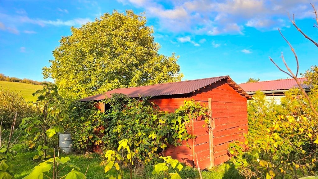 Na zahradě je též menší stodola a ohrazený výběh pro drůbež. Nádrže na vodu (akvaponický systém v zadním konci zahrady) jsou napojeny na 3 komorovou filtraci s odkalovacím sudem s UV lampou.