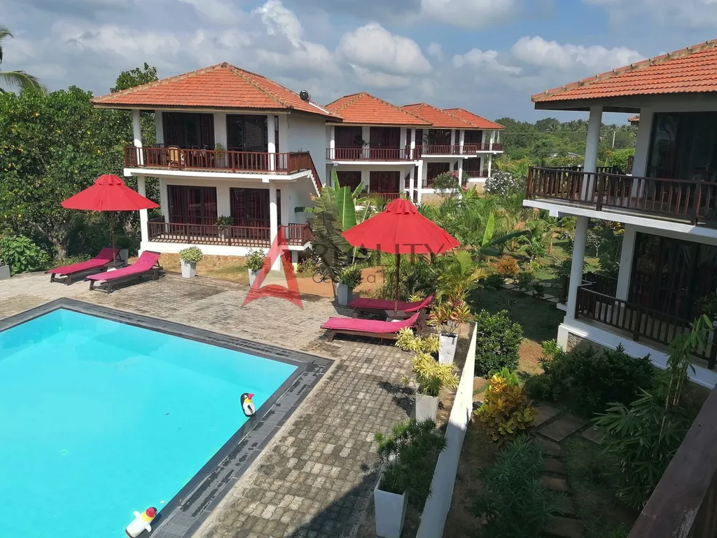 Nabízíme k prodeji krásný resort na jihovýchodě Srí Lanky s navazující vlastní pláží přímo u Indického oceánu postavený před 6-ti lety. Resort se nachází v subtropickém pásmu. Ubytování se skládá z 10-ti dvoupodlažních budov. V přízemí i na poschodí je vždy po jednom apartmánu pro 2 osoby s možností přistýlky s výhledem směrem k oceánu. Při cestě z apartmánu tropickou zahradou dojdeme k bazénu a jídelně s kuchyní. V kuchyni se připravují jak místní tradiční jídla, tak i jídla evropská. Pokud pokračujeme dál k oceánu přijdeme na nádhernou písečnou pláž. V resortu pracují místní zaměstnanci, česká tlumočnice a vedoucí celého resortu, který dohlíží na chod celého areálu. Pro ubytované se organizují výlety do nedaleké sloní rezervace, výlety lodí za velrybami, návštěvy ajurvédských zahrad, památek... V případě zájmu organizuje resort i výlety do Indie. V zadní části zahrady se uvažuje o vybudování velkého apartmánového domu o 2 podlažích, který by značně rozšířil kapacitu celého resortu.