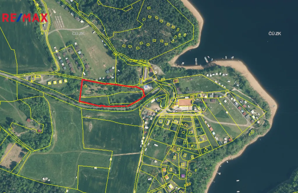 Nabízíme na prodej velký pozemek v těsné blízkosti vodní nádrže Orlík. Pozemek je souborem pěti různých pozemků, které na sebe navazují a tvoří jeden celek. Část pozemku je zastavitelná a územním plánem povolená k výstavbě. Na dalším pozemku je dřevěná chata s výhledem do krajiny.