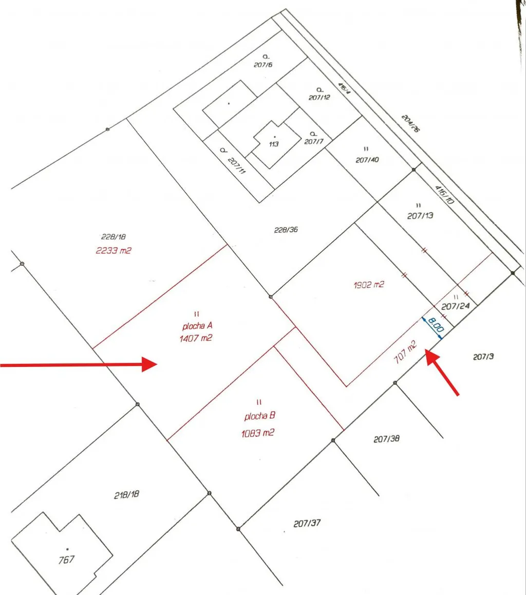 Na hranici pozemku je voda, elektřina i kanalizace.