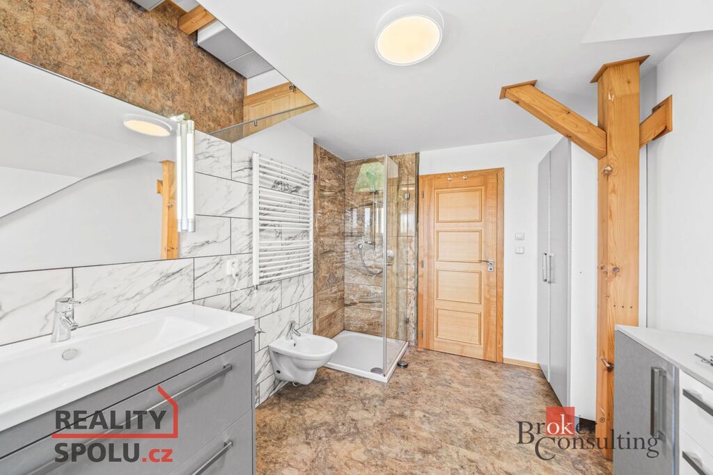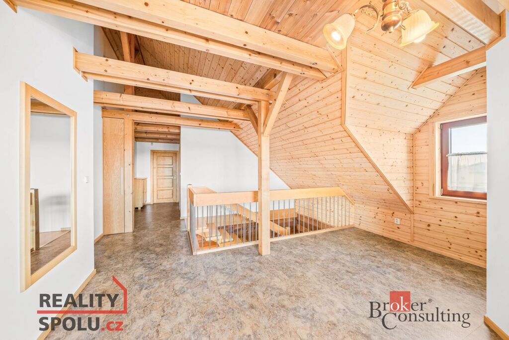 Celková užitná plocha 428 m² se rozprostírá na dvou nadzemních podlažích a suterénu, na prostorném, oploceném pozemku o rozloze 2 953 m² na klidném, vyvýšeném místě nedaleko lesa.