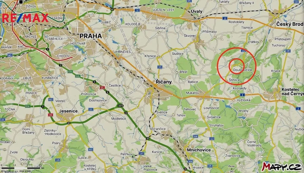 Dopravní dostupnost: Praha 20 min, vlak Úvaly 8 km, Český Brod, Kostelec nad Černými lesy i Říčany 8 km. Občanská vybavenost v obci: školka, obchod s potravinami, 2 x restaurace, cukrárna, knihovna a další. V obci Doubravčice u Prahy-východ bude nyní probíhat výstavba nové velké školy, projekt na výstavbu školy je již vyhotoven.