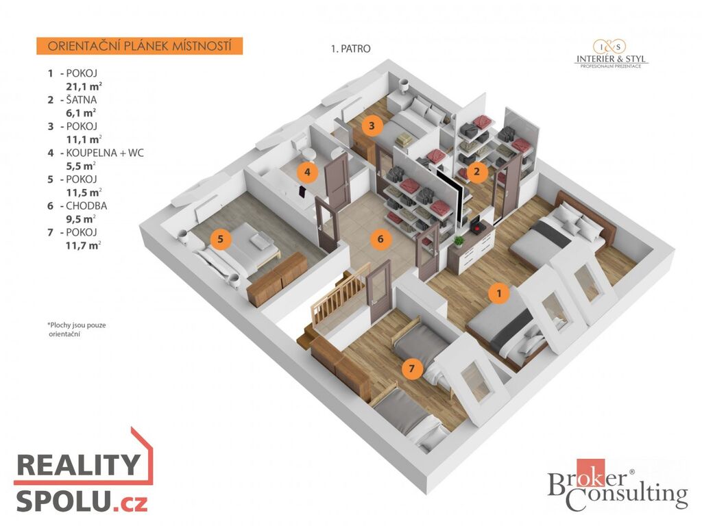 Prostorná, zděná dvoupodlažní nemovitost s obytným podkrovím s dispozicí 7+2 se zastavěnou plochou 126 m2, byla zkolaudovaná v roce 1993 a po celou dobu prochází průběžnou údržbou a modernizací. Dispozice nemovitosti umožňuje její využití pro velkou rodinu či skupinu přátel, lze ale také rozdělit na 3 byty v každém podlaží jeden.