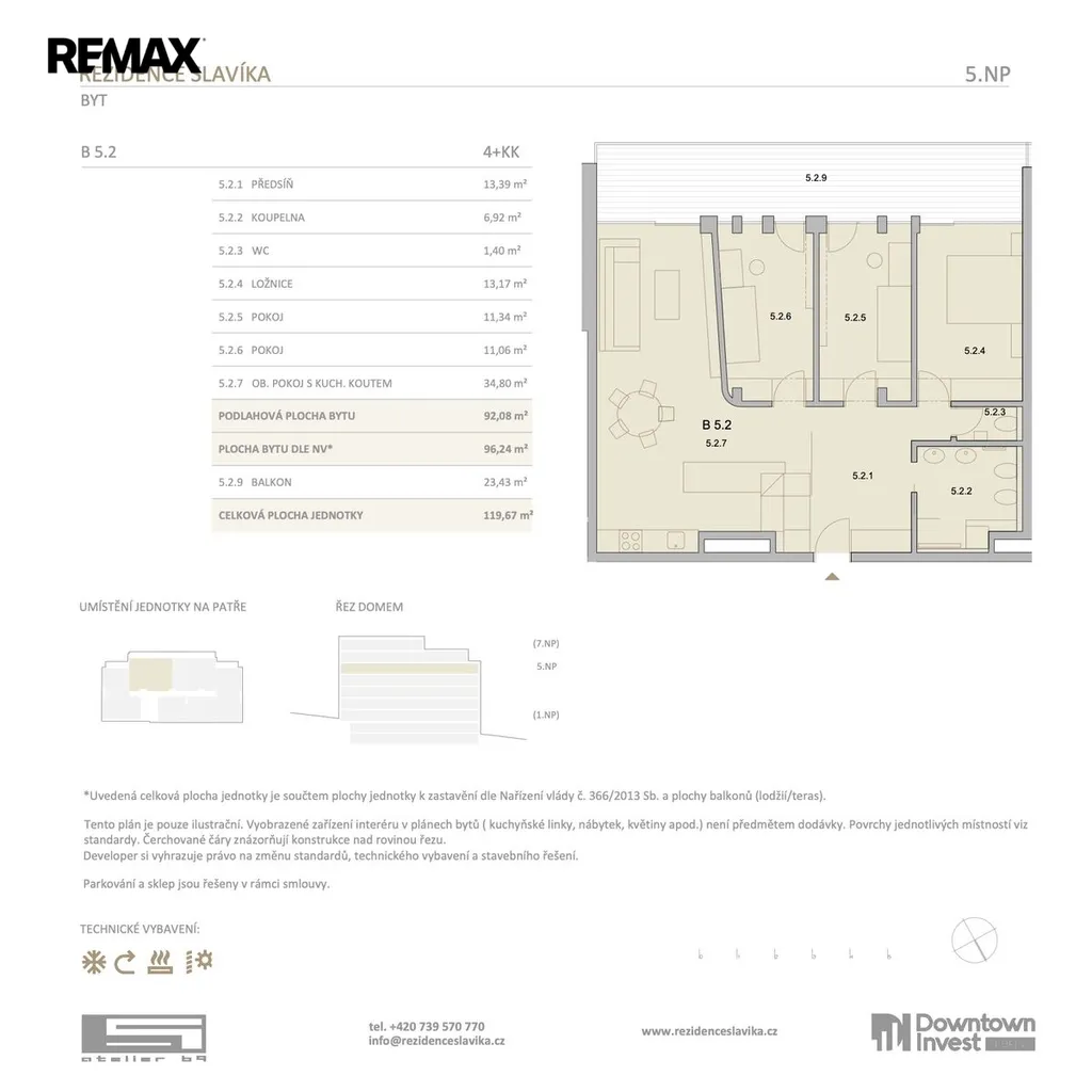 Luxusní a moderní 7-podlažní bytový dům s 56 jednotkami pro bydlení o dispozicích od 1+kk až 4+kk s výměrou od cca 40 m2 po rozměrově nadstandardní bydlení o výměře 116m2 nabídne vysoký standard technologického vybavení současně s ohledem na ekologiia udržitelnost. Velkou výhodou je bezprostřední blízkost zeleně díky umístění na hraně rozsáhlého vnitrobloku se vzrostlými stromy. Díky velkým balkonům je zajištěno i pasivní stínění u bytů do zahrady.