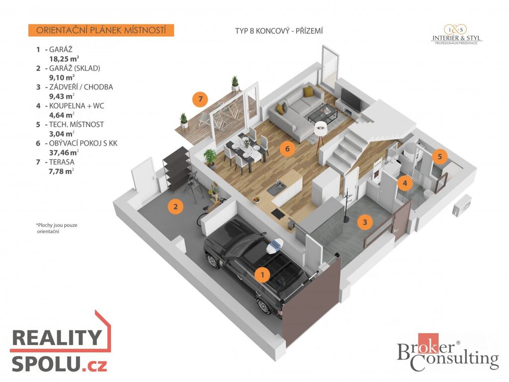 S radostí Vám představujeme dům typu B (koncový) v exkluzivním projektu řadových rodinných domů v Ořechu u Prahy.