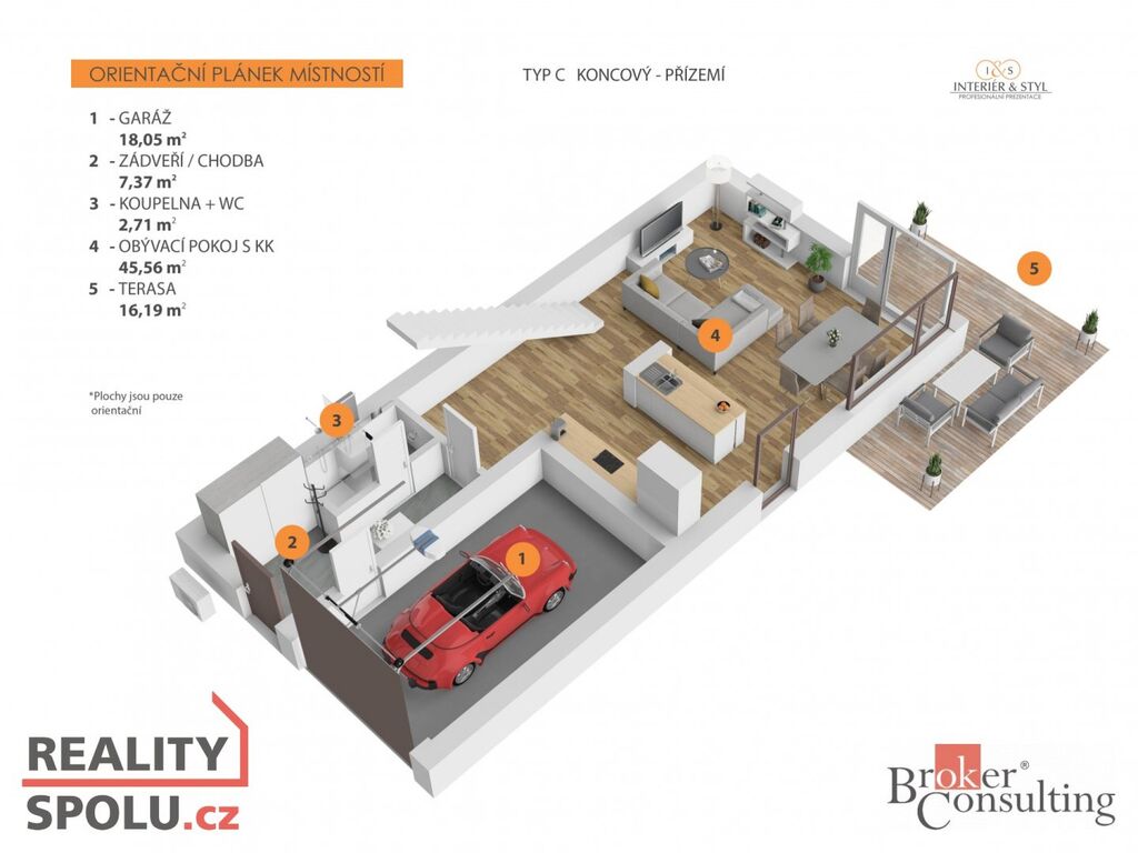 We are pleased to present type C (end of the block) house in an exclusive project of terraced houses in Ořech u Prahy.