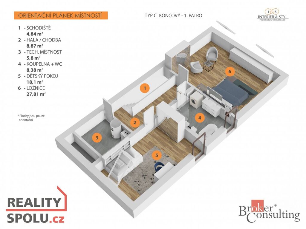 S radostí Vám představujeme dům typu C (koncový) v exkluzivním projektu řadových rodinných domů v Ořechu u Prahy.