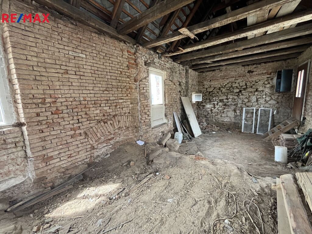 Na pozemku je stavba původního domu, z kterého byly kompletně odstraněny všechny vnitřní příčky a omítky obvodových zdí, odstraněny stropy, vykopány podlahy a proběhl odvoz veškeré suti.