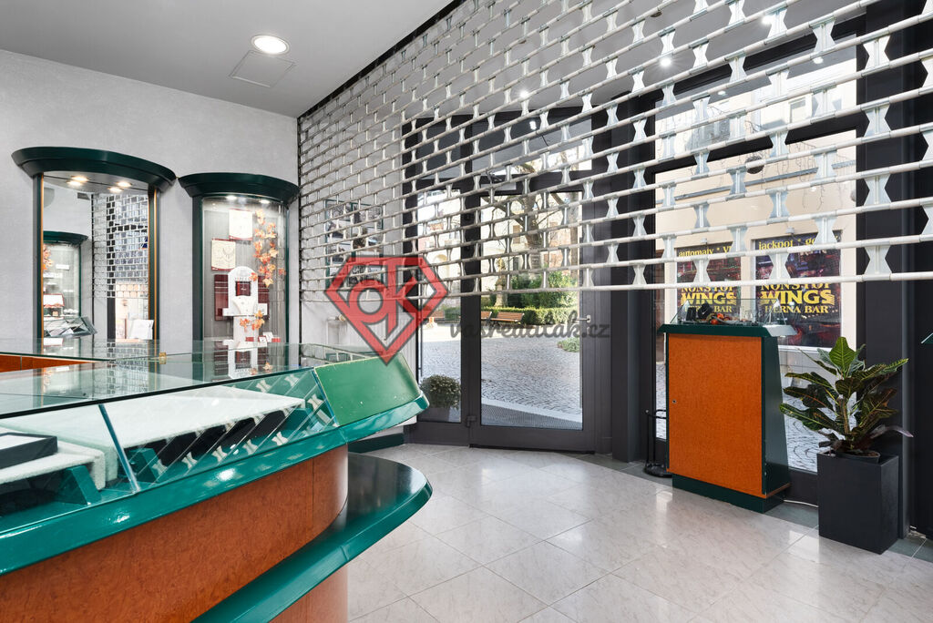 Prostor zlatnictví disponuje užitnou plochou 23 m² a 7 m² zázemí. Díky svému současnému využití, je toto místo střeženo kamerovým systémem, napojeno na PCO a překvapením tím pádem není ani rolovací mříž. Hliníkové výlohy a vstupní dveře, jsou navíc po celkové rekonstrukci a splňují bezpečnostní i tepelné parametry. Prostor má klimatizaci a trezor.
