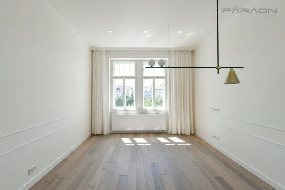 Pronájem nového, luxusního a nadstandartně zařízeného bytu 3kk (93m2) s klimatizací, s balkonem s parkovacím místem v ceně nájmu v mimořádně atraktivní lokalitě u náměstí Jiřího z Poděbrad ve 4. podlaží kompletně zrekonstruovaného, secesního činžovního domu s výtahem, se zachovanými původními prvky. Atraktivní a žádaná lokalita přímo na náměstí Jiřího z Poděbrad v minutové vzdálenosti na metro (stanice metra A Jiřího z Poděbrad) a tramvajovými spoji, s veškerou občanskou vybaveností v místě.