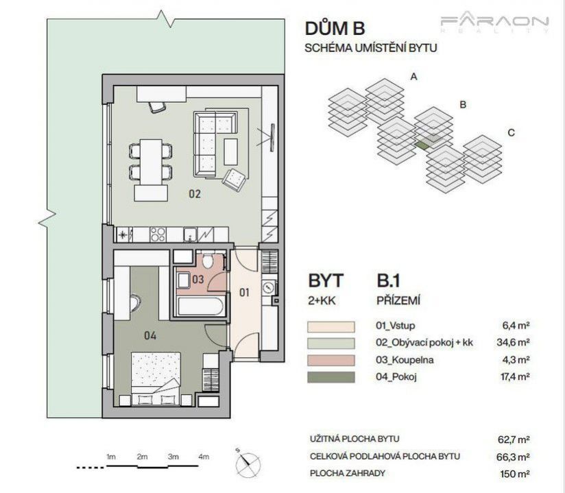 Nabízíme Vám nadstandardní nový byt 2+KK o ploše 68,1 m2 se zahradou 150 m2 v komorním projektu tří bytových domů v Rezidenci Klíčov, v srdci Vysočan, nedaleko metra Vysočanská.