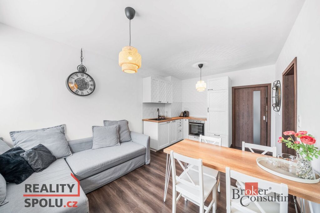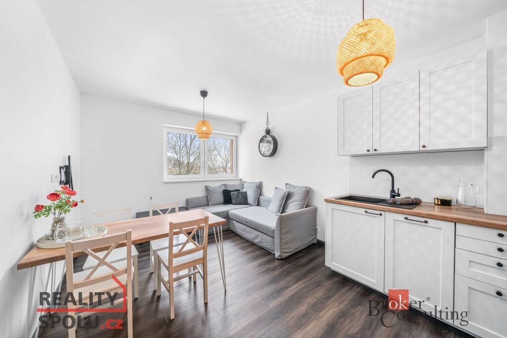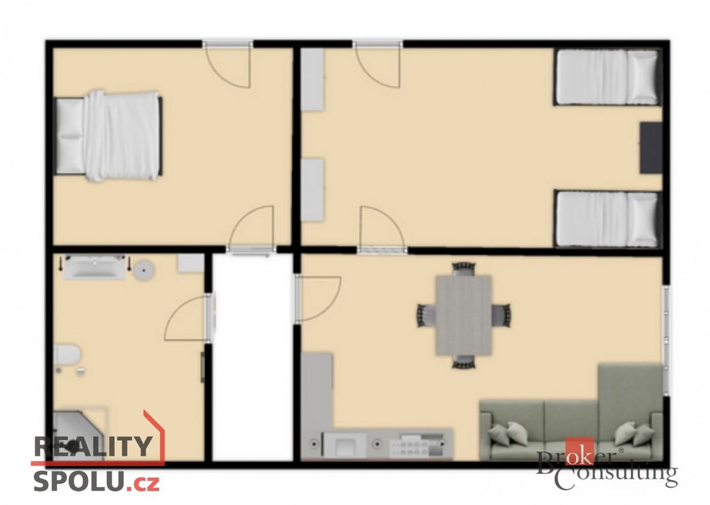 Byt nabízí dvě ložnice, obývací pokoj s kuchyňským koutem a koupelnu se sprchovým koutem a WC. Náleží k němu sklepní kóje. Dům je vytápěn kotlem na elektrickou energii, která je do bytu rozvedena moderním podlahovým topením.