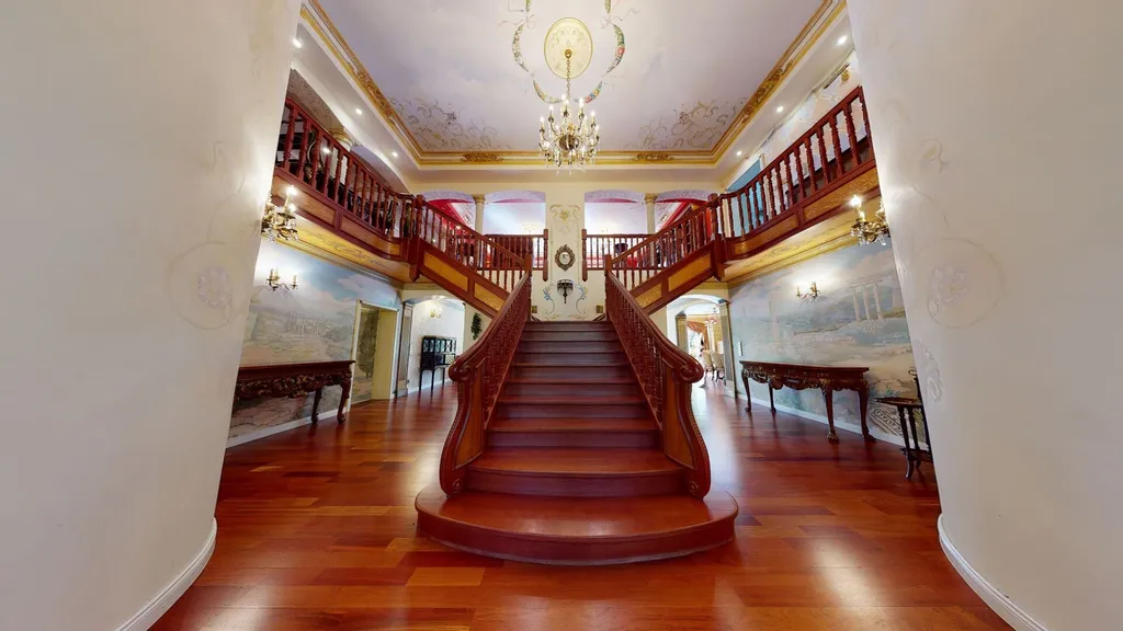 V přízemí vilu představuje hala s majestátním schodištěm.