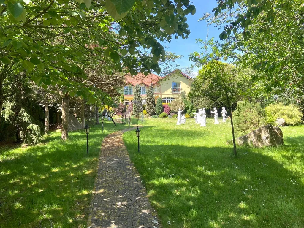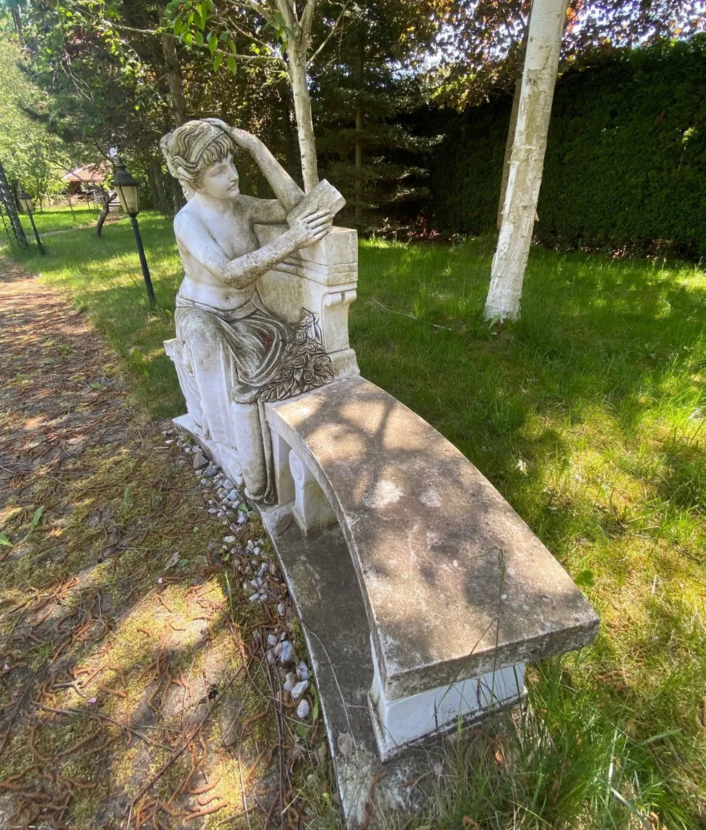 Upravená zahrada a kompozice starožitných mramorových soch vytvářejí soukromí a klid.
